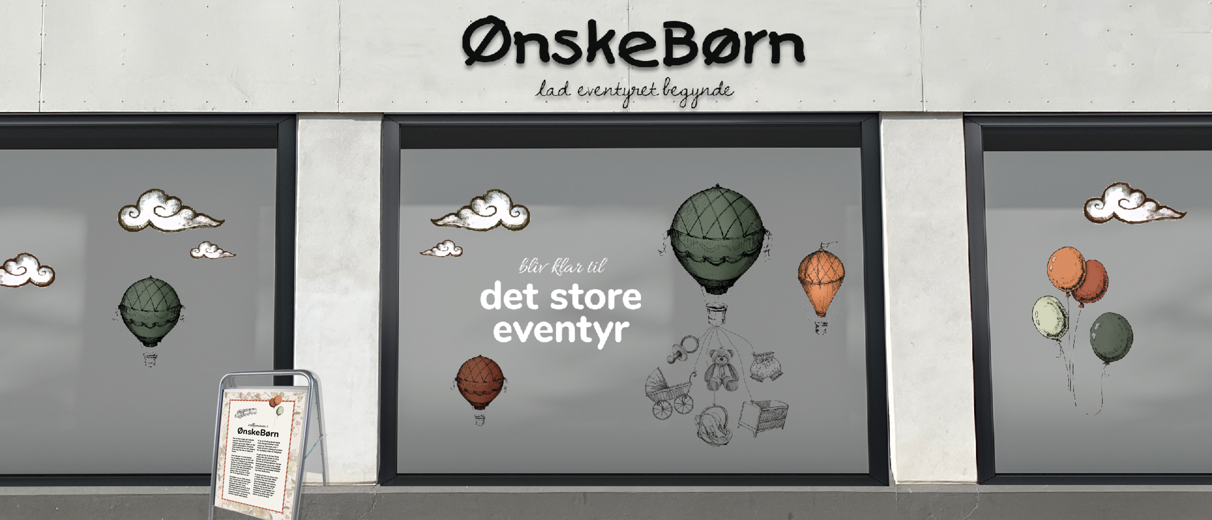 Hos en frivillig kæde som ØnskeBørn, der gerne vil udvikle og aligne sit brand såvel som bevare sit lokale islæt, er det udforende at få skabt en identisk brandoplevelse og -opfattelse på tværs af kæden. Lige fra den samlede kædekommunikation, der udsendes, og ned til kommunikationen hos de individuelle lokale butikker. I kædestrategien har vi derfor anbefalet at bruge fælles POS-kommunikationsmaterialer – lige fra tilbudsskilte, vinduesfolie, skilteplakater og balloner over til gavepapir, gavebånd og poser. Alle materialer bruger de brand essentials, som Clienti har udviklet til ØnskeBørn, med henblik på at ØnskeBørn opnår en stærkere positionere med sit brand overfor mødrene på.